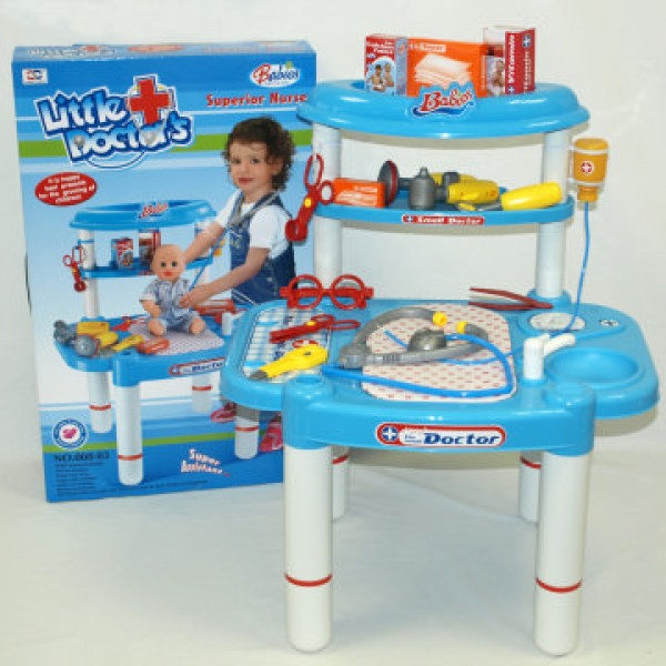 Stetoskop, špric, kao i aparate za merenje pritiska i temperature, a sve je lepo upakovano u koferčić koji dete može svuda da ponese. Kada je sklopljen, može poslužiti kao stolac, a kada dođe vrijeme za igru, brzo se transformira u atraktivan set za doktora.. Izrađeno od kvalitetne i čvrste plastike, fino obrađeno.